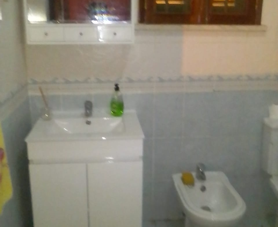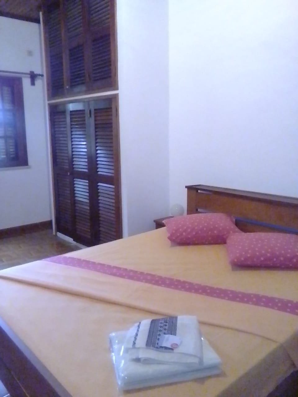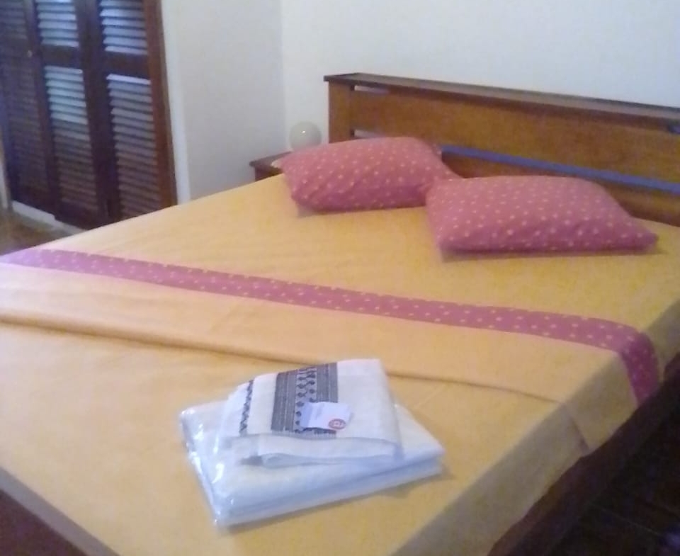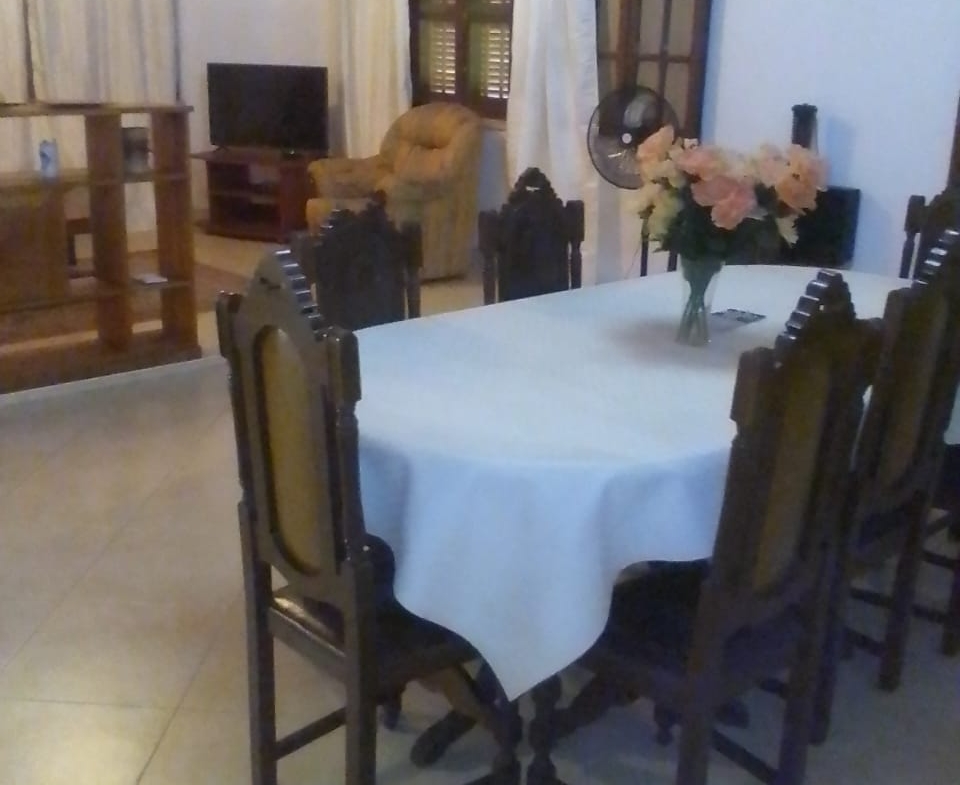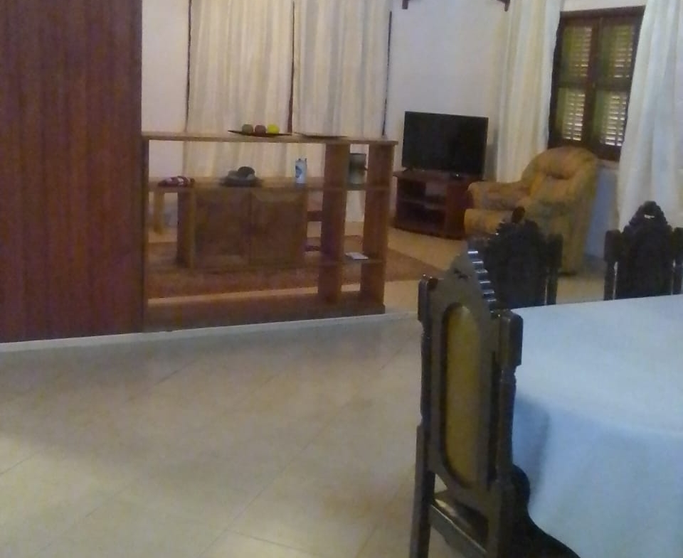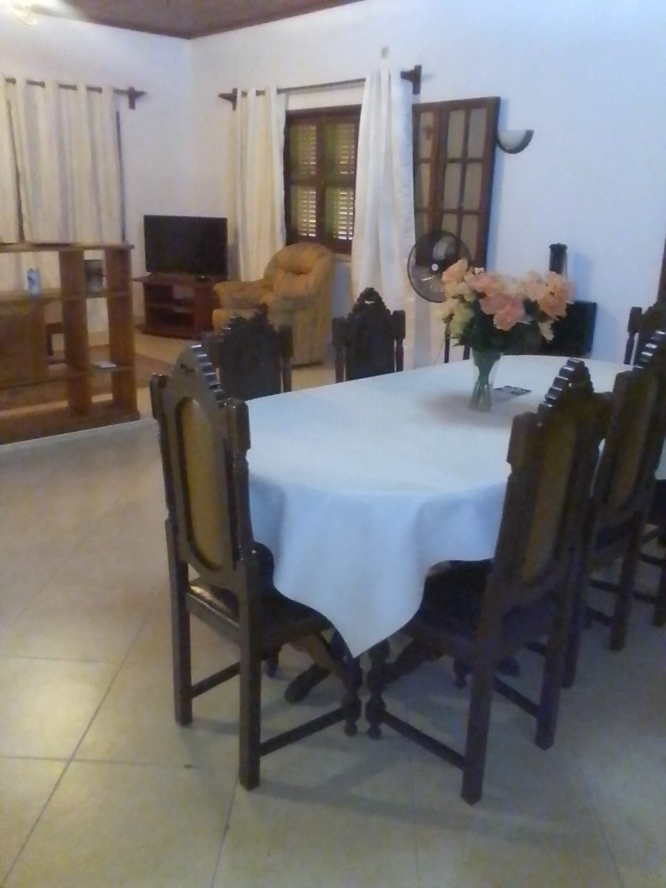 A casa encontra-se parcialmente mobilada, com móveis em madeira maciça e decoração simples e acolhedora.